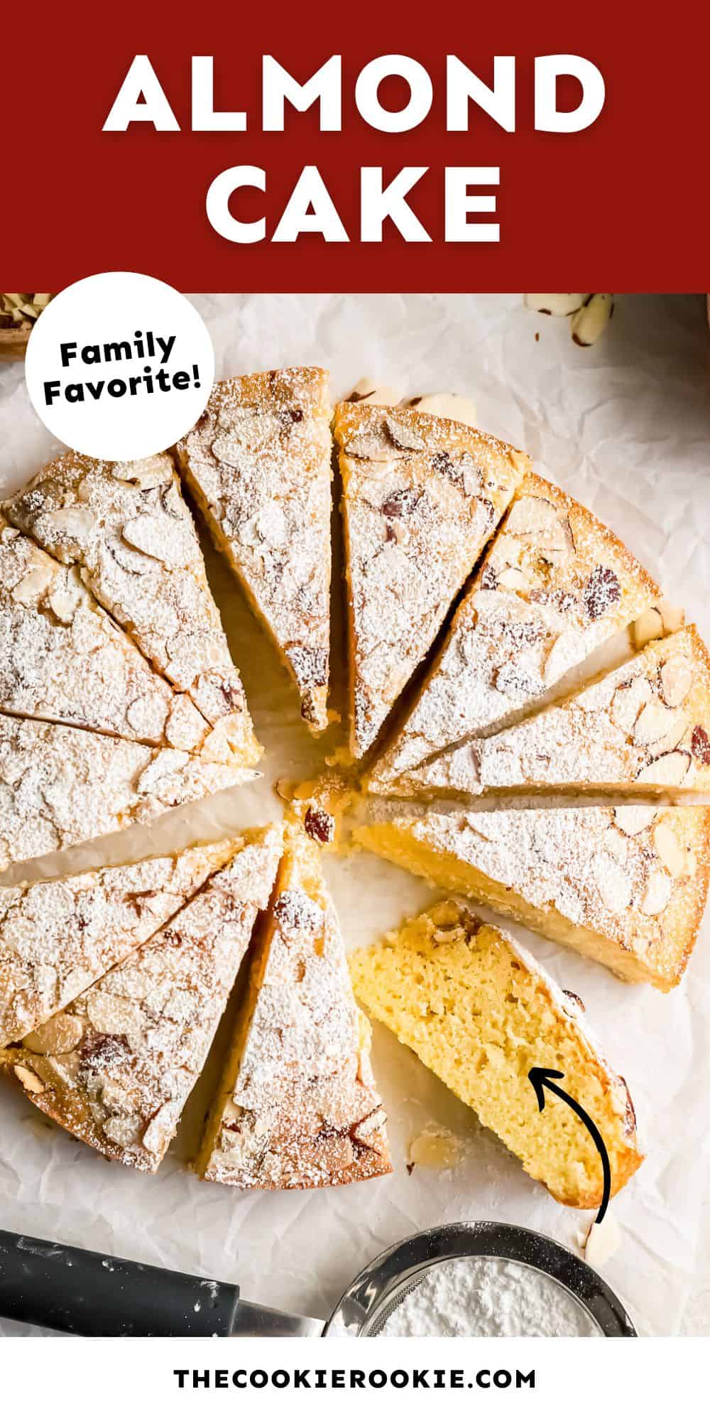 - Almonds: Add texture and improve the almond taste of the cake.